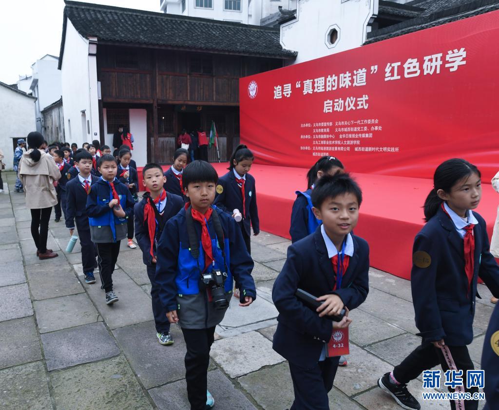 当日,为纪念中国共产党成立100周年,由浙江省义乌市委宣传部、义乌市教育局、城西街道党工委等部门共同组织开展的,追寻“真理的味道”——红色研学启动仪式在浙江省义乌市城西街道分水塘村举行。数百名小学生在老师的带领下开启了红色研学之旅,通过参观陈望道故居、观看红色话剧、走访老战士、听老战士讲革命故事等活动,重温红色革命历史。