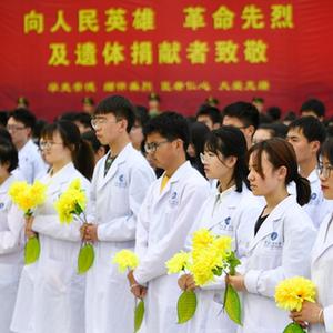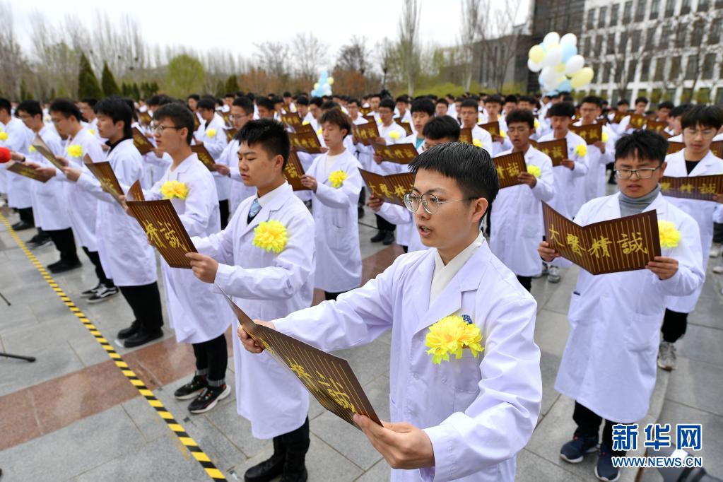 4月2日,宁夏医科大学学生宣读《遗体和人体器官捐献倡议书》。