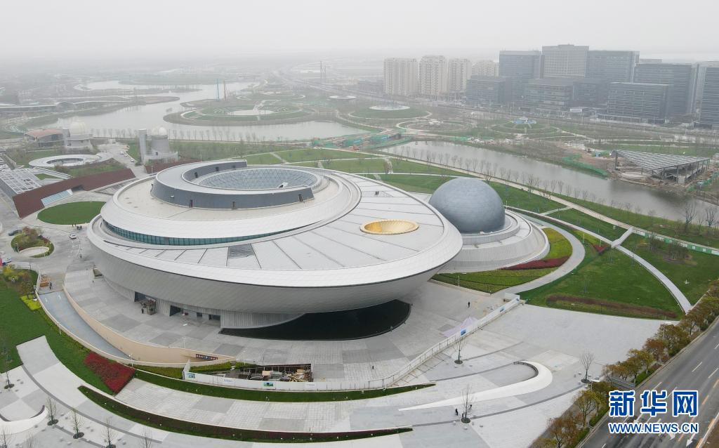 这是从空中俯瞰位于上海浦东临港的上海天文馆主体建筑(4月2日摄,无人机照片)。
