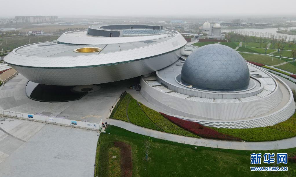 这是从空中俯瞰位于上海浦东临港的上海天文馆主体建筑(4月2日摄,无人机照片)。