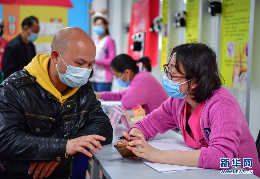 4月2日,四川省妇幼保健院儿童保健科医生聂晶(右)在义诊环节接受一位自闭症儿童家长的问询。