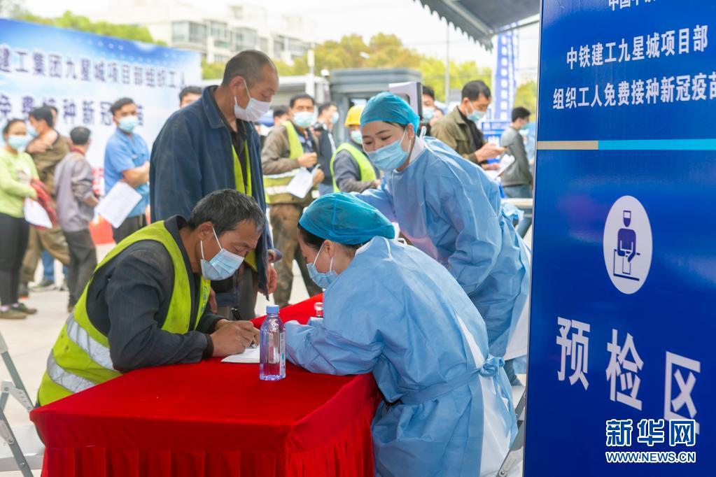 当日,一辆移动预防接种车来到中铁建工集团上海九星城项目工地,为项目工作人员进行新冠疫苗免费接种服务。这辆移动预防接种车设有2个固定接种单元,接种条件与定点接种单位相同。现场设置了等待区、预检区、疫苗接种区以及留观区,800余名项目工作人员分批次有序进行疫苗接种。