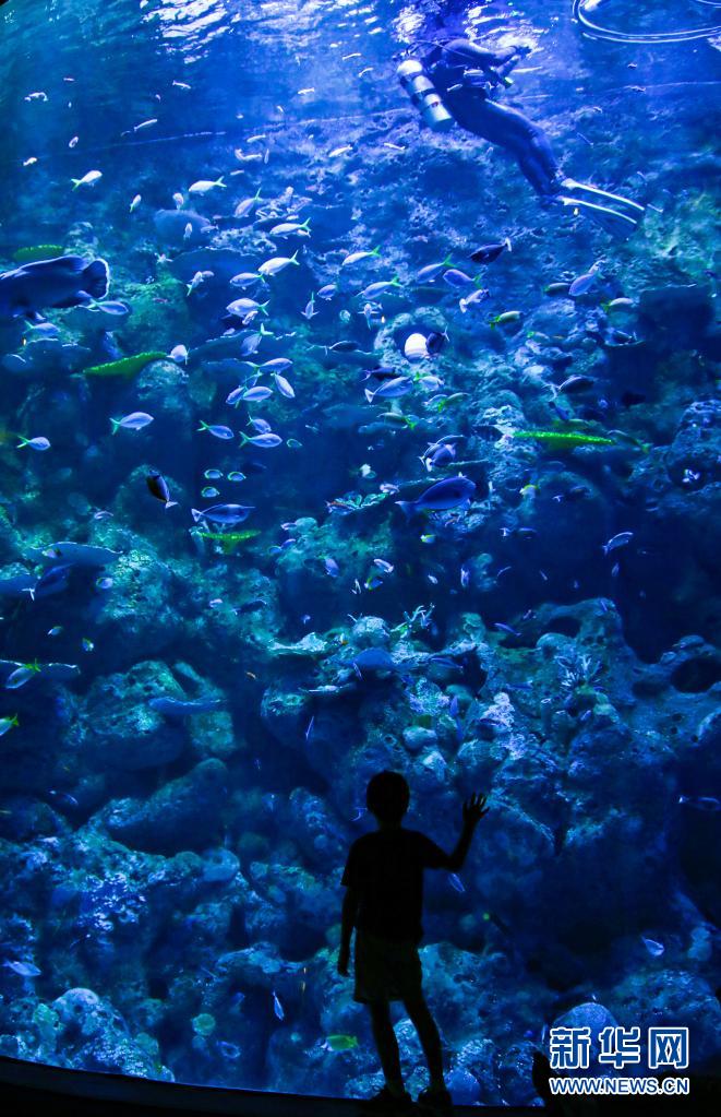 4月1日,游客在澳大利亚凯恩斯参观水族馆。