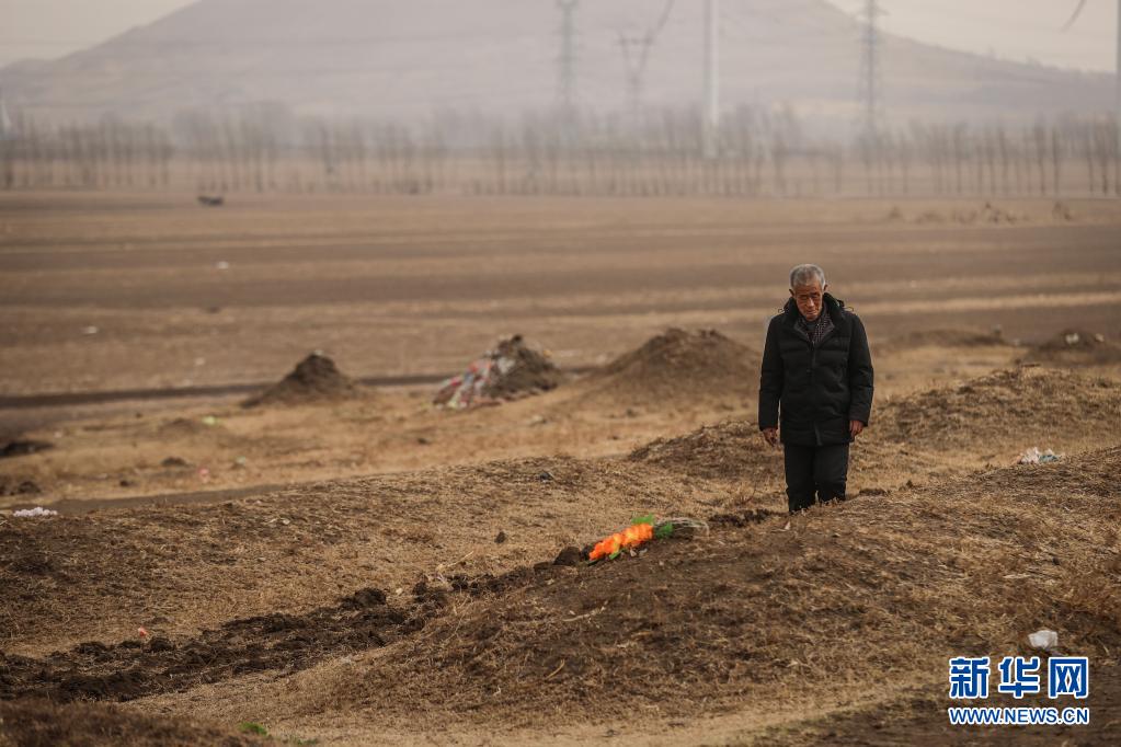 3月23日,张德东在辽宁省锦州市黑山县薛屯乡东水泉村西南处查看自己寻找到的烈士墓地。新华社记者 潘昱龙 摄