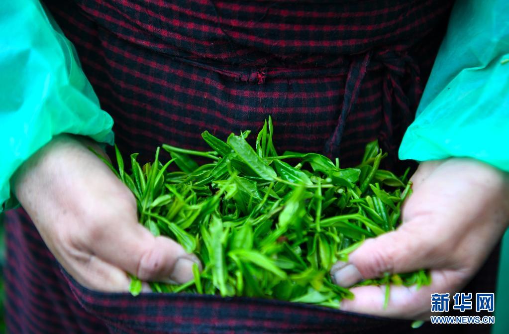 清明将至,正值河南信阳毛尖采摘上市的关键时期,采茶工人在茶园忙着采摘明前茶供应市场。
