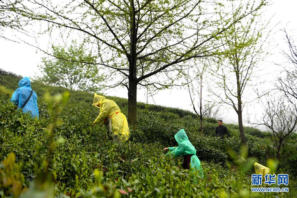 清明将至,正值河南信阳毛尖采摘上市的关键时期,采茶工人在茶园忙着采摘明前茶供应市场。