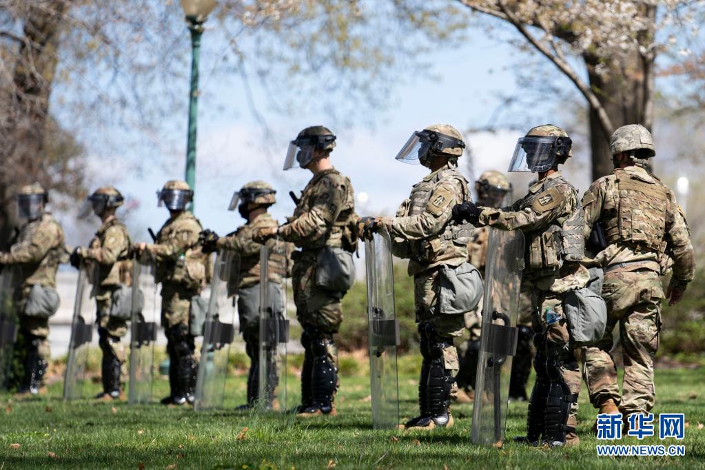 4月2日,美国国民警卫队队员在华盛顿国会附近警戒。