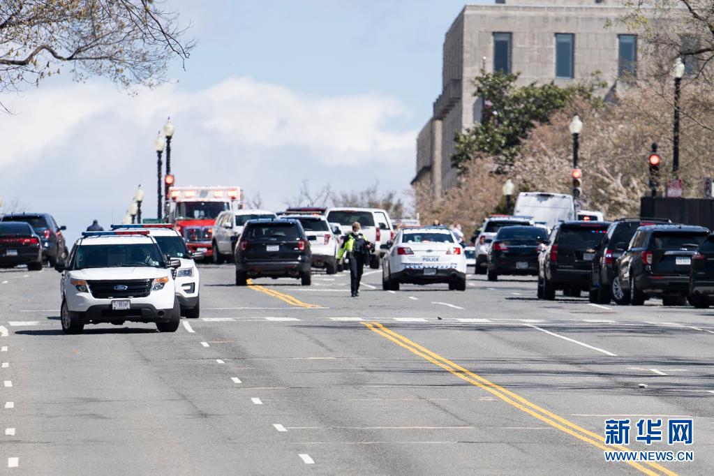 4月2日,在美国华盛顿,警车在袭警事件现场附近待命。