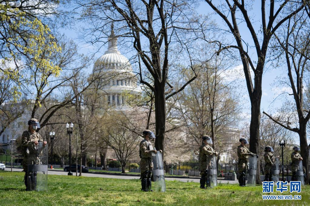 4月2日,美国国民警卫队队员在华盛顿国会附近警戒。