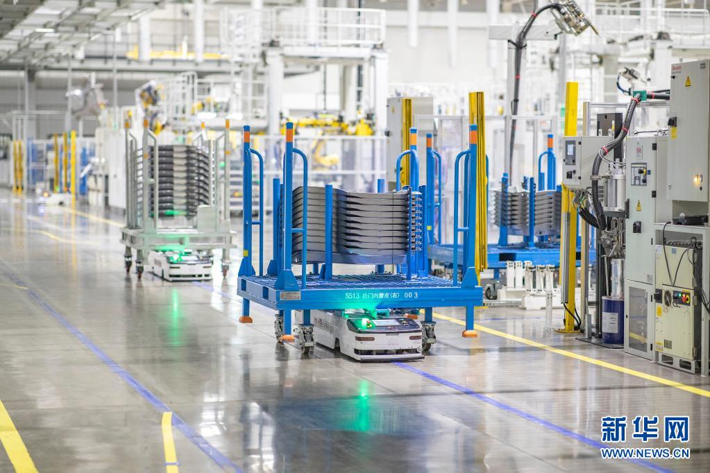 4月2日,在重庆金康赛力斯两江智能工厂焊装车间,AGV搬运机器人在车间内穿梭,将零部件及时转运至下一个流程点。