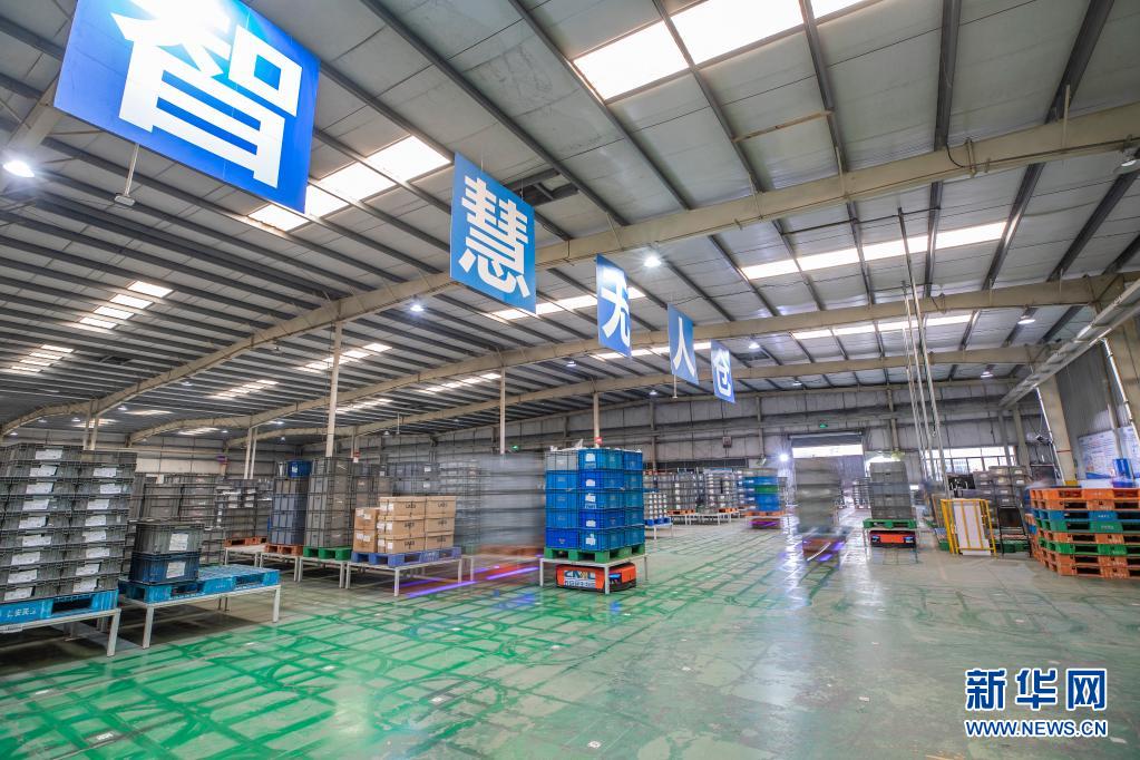4月1日,在重庆长安民生物流股份有限公司,仓储搬运机器人在无人仓中搬运汽车零部件。