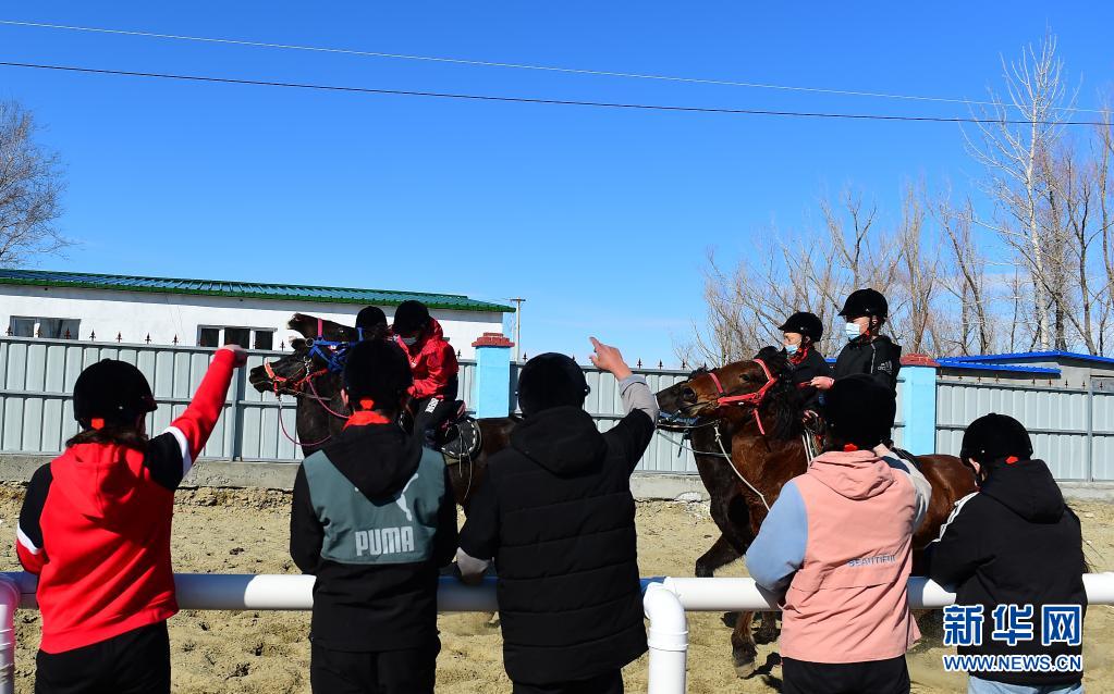 马术在布尔津县有较强的群众基础,节庆期间常举行“姑娘追”“叼羊”等骑马活动。县教育部门已将马术列为中小学生特色体育课程,全县已有三所学校开设马术课,窝依莫克镇寄宿制中学就是其中之一。该校自2019年起与当地一家马术基地合作,为四至八年级学生教授马术课,课程分为理论知识和骑乘实践两部分。孩子们大都来自牧民家庭,对马并不陌生。他们迅速与马儿成为亲密伙伴,理论、实践相辅相成,轻松“解锁”了基本的马术技巧。
