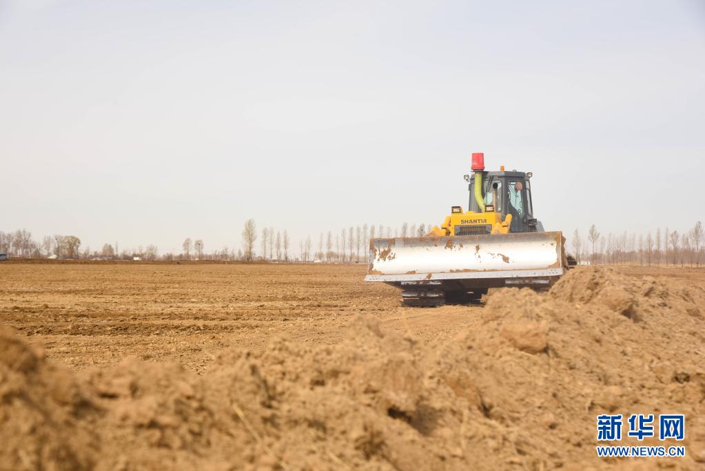 4月3日,工作人员在达拉特旗昭君镇平整土地。