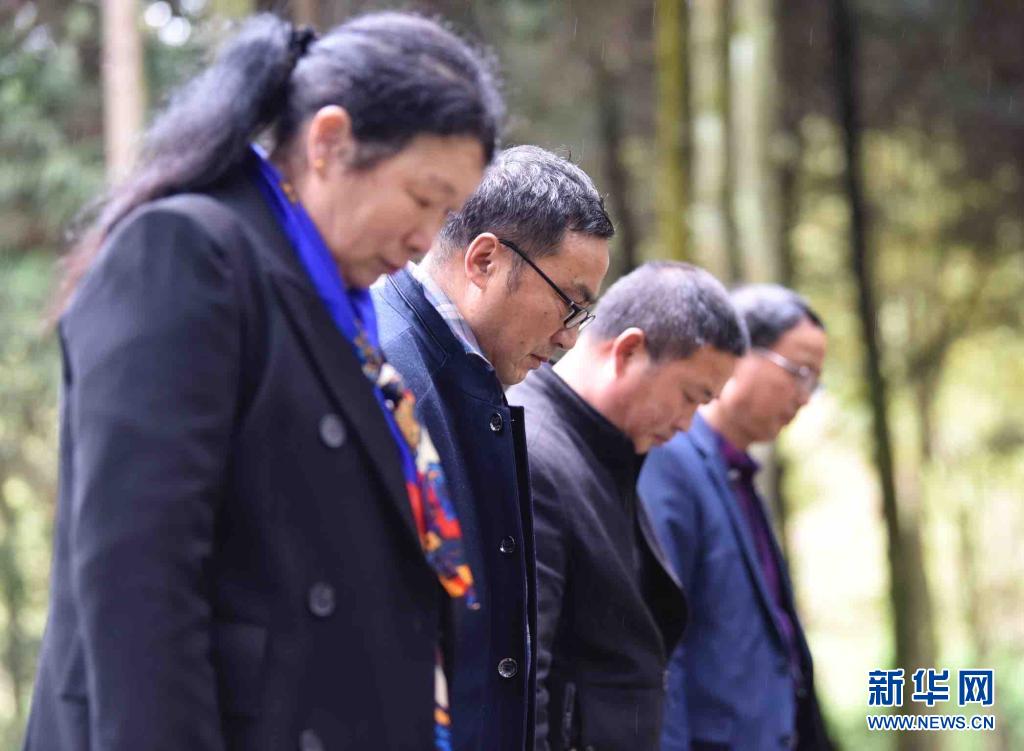 4月3日,红军烈士陈自岗的后人来到川陕革命根据地烈士陵园,在纪念碑前为先烈默哀。