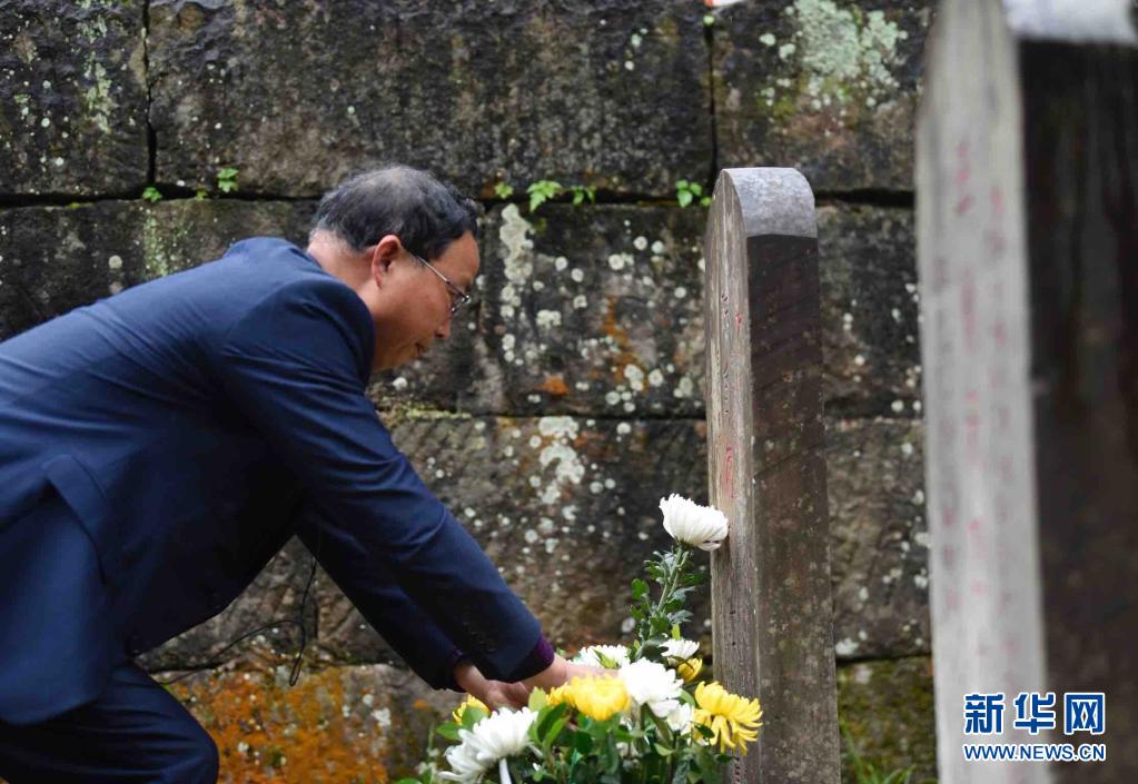 4月3日,红军烈士陈自岗的后人来到川陕革命根据地烈士陵园祭奠陈自岗。