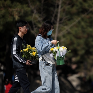 4月4日,几名烈士后人在沈阳抗美援朝烈士陵园里祭拜。当日是清明节,辽宁沈阳抗美援朝烈士陵园举行祭奠革命先烈活动,许多烈士后人和市民纷纷来此寄托哀思,致以敬意。新华社记者 姚剑锋 摄