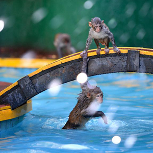 猕猴戏水