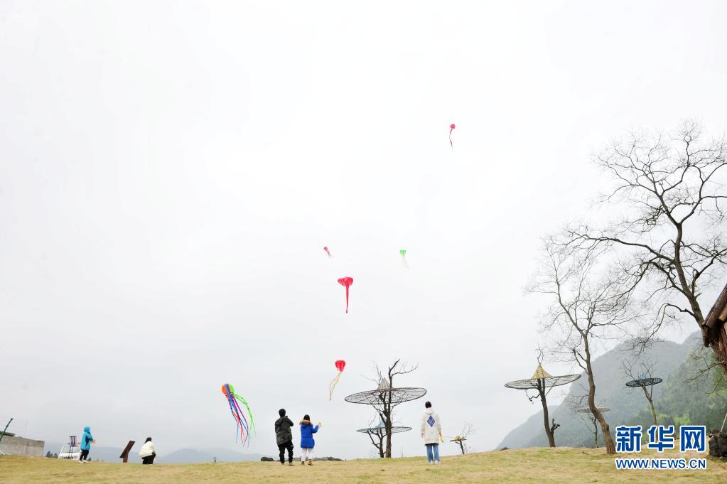 4月5日,游客在重庆市酉阳土家族苗族自治县叠石花谷生态旅游景区放风筝。