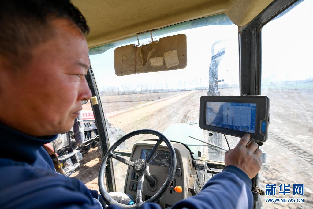 在位于宁夏吴忠市利通区金积镇塔湾村的智慧农业科技示范区,农机手在播种前调试自动驾驶拖拉机(2020年4月9日摄)。近年来,宁夏吴忠市利通区大力发展智慧农业,通过引进北斗导航系统、智能环境与土壤监测系统、植保无人机等智能化农业技术和设备,帮助农民在提高耕作、播种效率与质量的同时,降低生产成本。