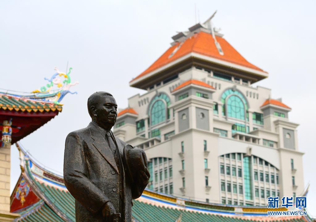 这是厦门大学里的陈嘉庚雕像(4月1日摄)。