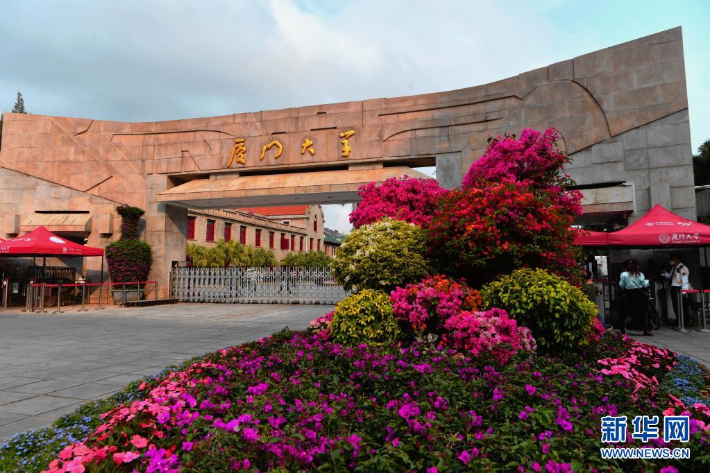 厦门大学西校门花团锦簇,迎接百年校庆(4月1日摄)。