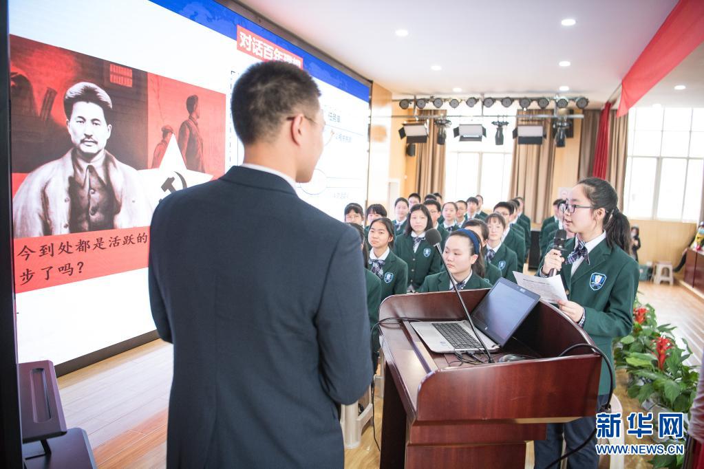 4月6日,来自华中科技大学附属中学的教师徐风(左)在研讨会现场为学生授课。
