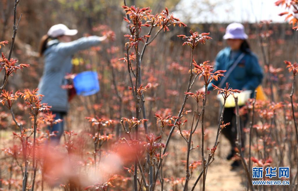 4月6日,农民在石家庄市鹿泉区白鹿泉乡谷家峪村采摘香椿。