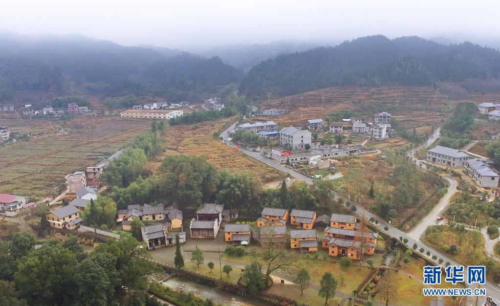 这是井冈山茅坪八角楼毛泽东旧居(无人机照片,2016年12月21日摄)。新华社记者 周密 摄