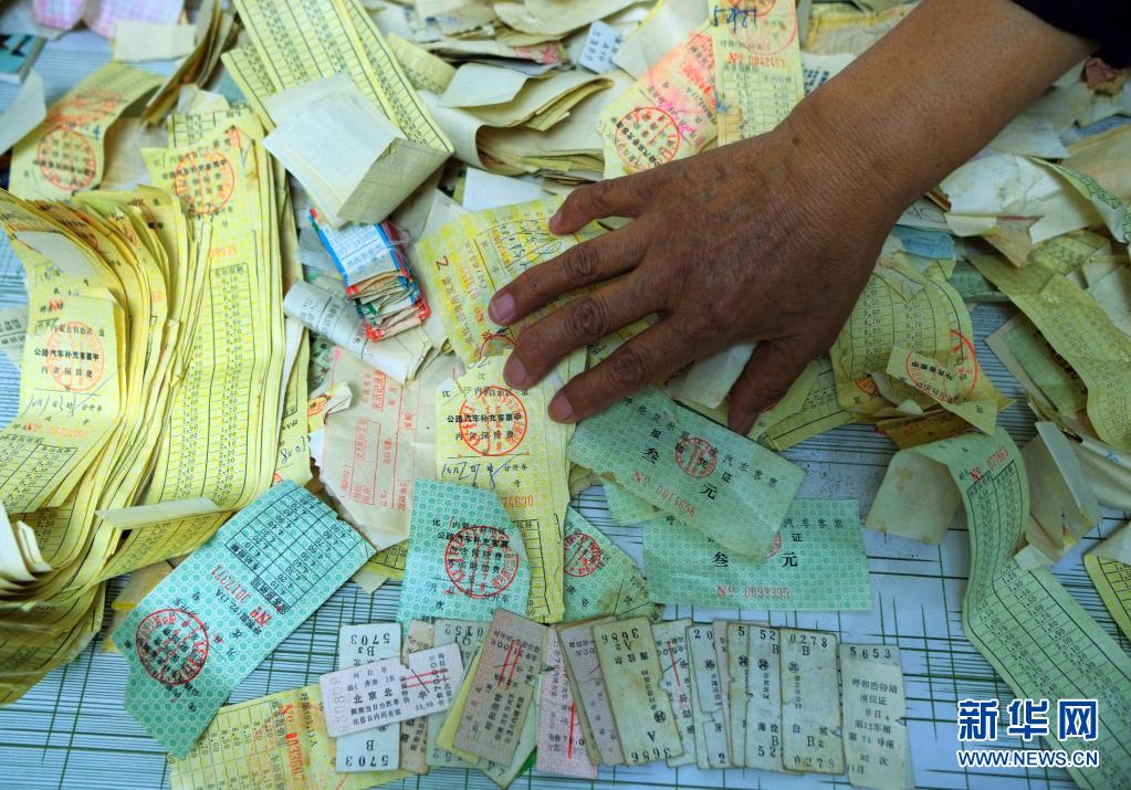 受害人白某春的母亲整理20多年反映问题期间,乘坐交通工具使用的车票(2020年9月25日摄)。