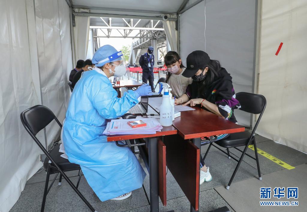 4月7日,市民在接种点登记信息。