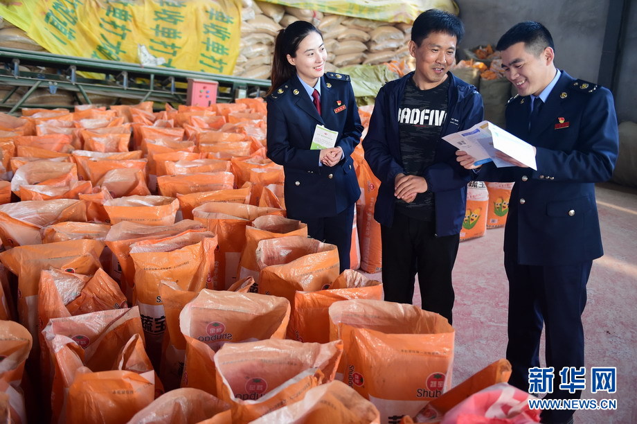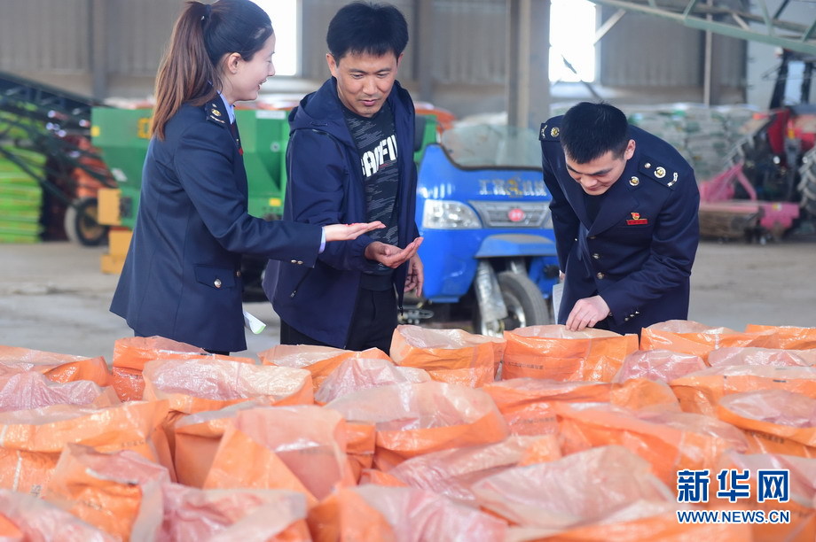 4月7日,国家税局总局河北泊头市税务局工作人员到泊头市蔬宝种业有限公司了解企业经营情况,讲解减税降费政策。新华网发(傅新春 摄)