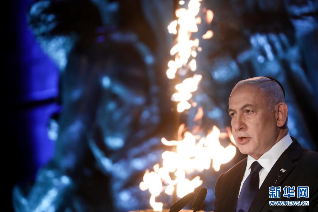 4月7日,以色列总理内塔尼亚胡在位于耶路撒冷的亚德瓦希姆大屠杀纪念馆举行的大屠杀纪念日活动上发表讲话。