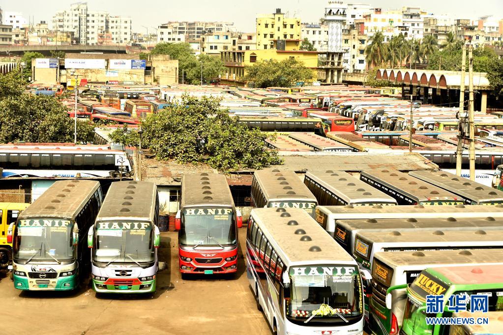 4月7日,公交车停放在孟加拉国达卡一处车站。