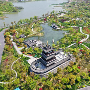 4月8日拍摄的2021年扬州世界园艺博览会园区(无人机照片)。