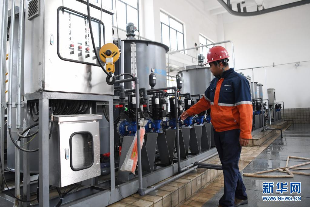 4月8日,兰州新区化工园区污水处理厂工作人员在车间内检查调试设备。