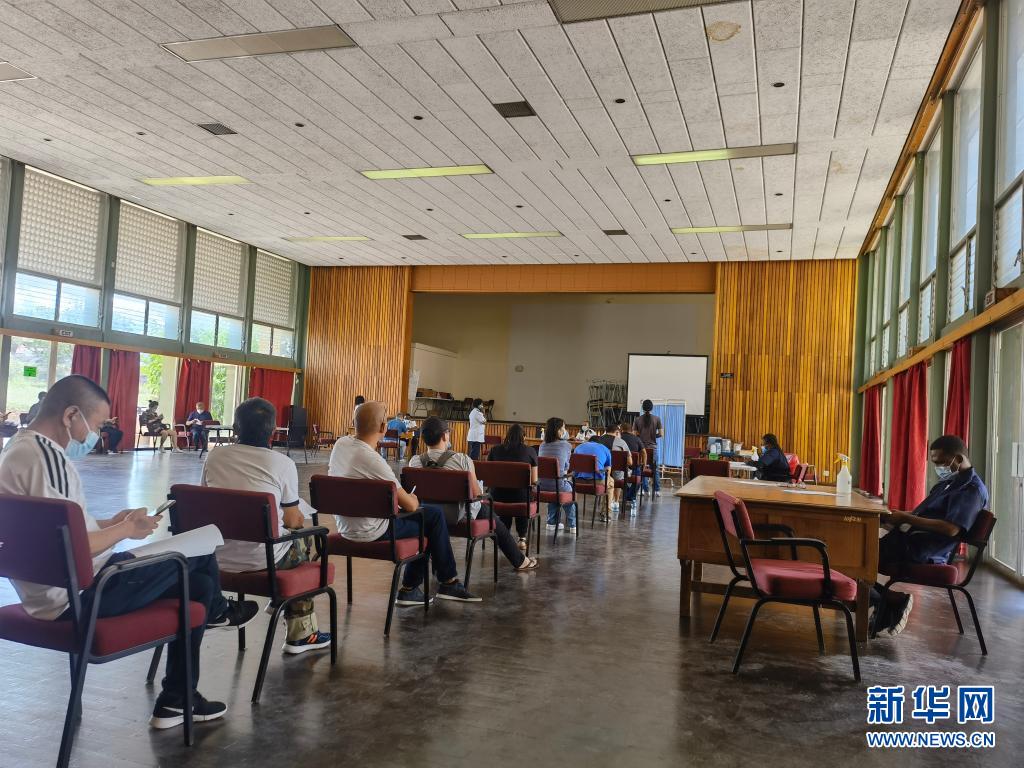 这是3月29日中国公民在纳米比亚海滨城市斯瓦科普蒙德等待接种新冠疫苗登记的资料照片。