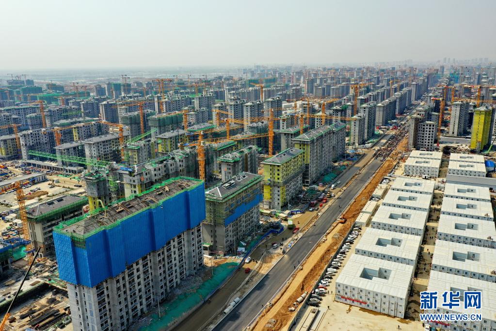 4月8日拍摄的雄安新区容东片区安置房项目建设现场(无人机照片)。
