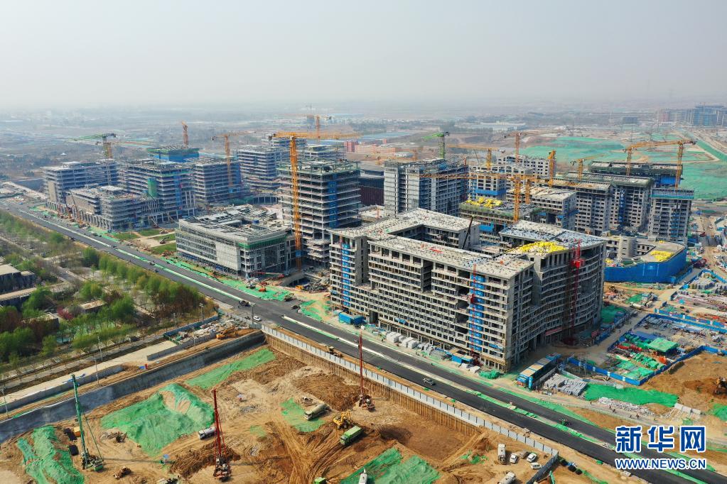 4月8日拍摄的雄安新区商务服务中心建设现场(无人机照片)。