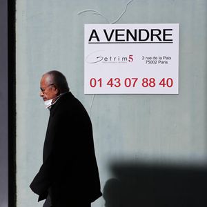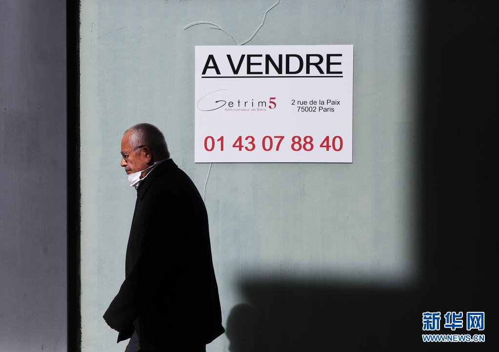 4月8日,在位于法国巴黎南部的蒙塔日,一名男子走过一家待售的商铺。