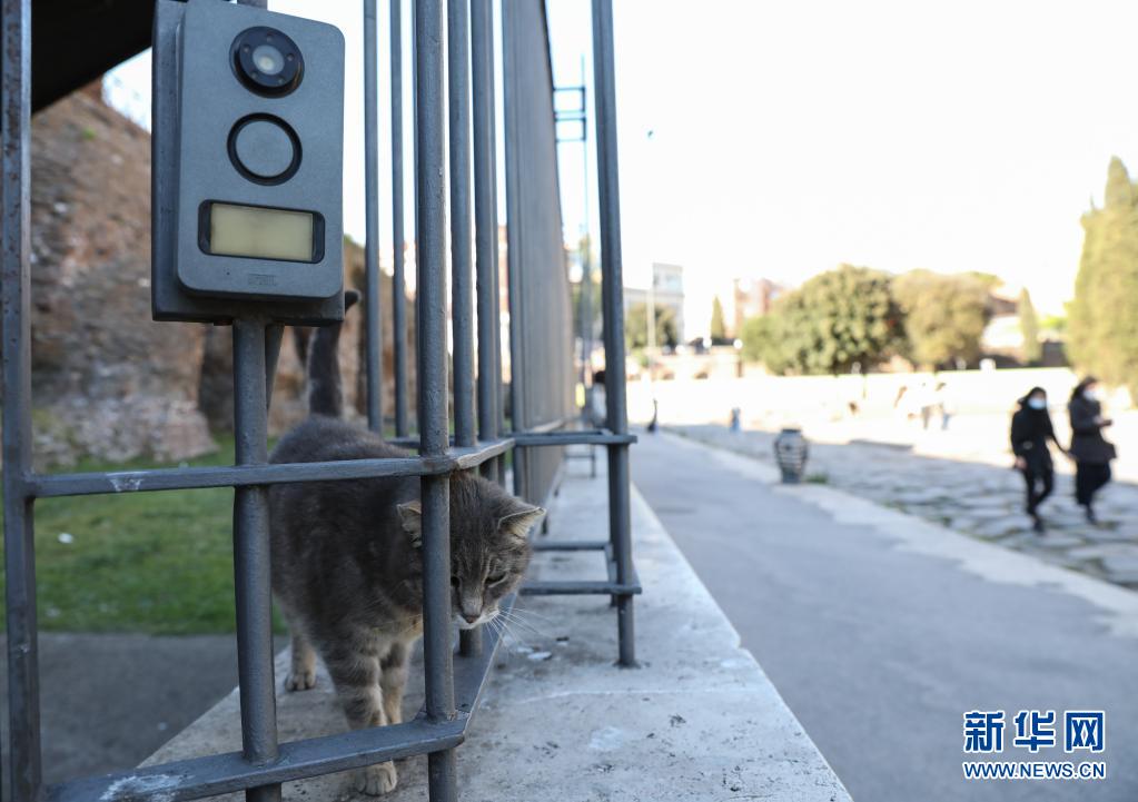 4月8日,一只猫站在关闭的意大利罗马斗兽场售票窗口边。