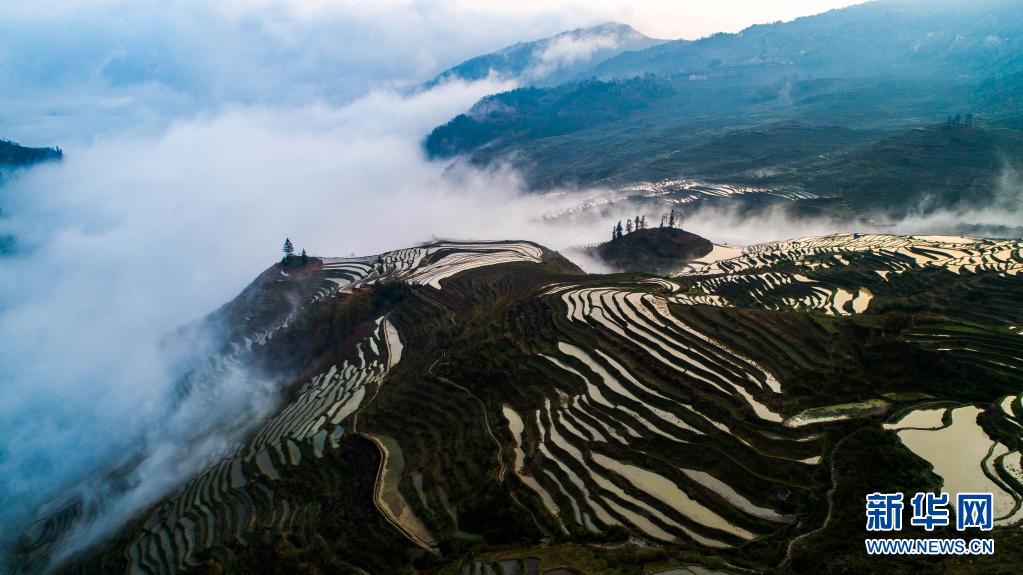 这是哈尼梯田美景(2020年3月6日摄,无人机照片)。新华社记者 胡超 摄