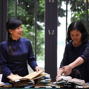 4月8日,岛上书院创始人秦鸿雁(左)在整理读者留言。