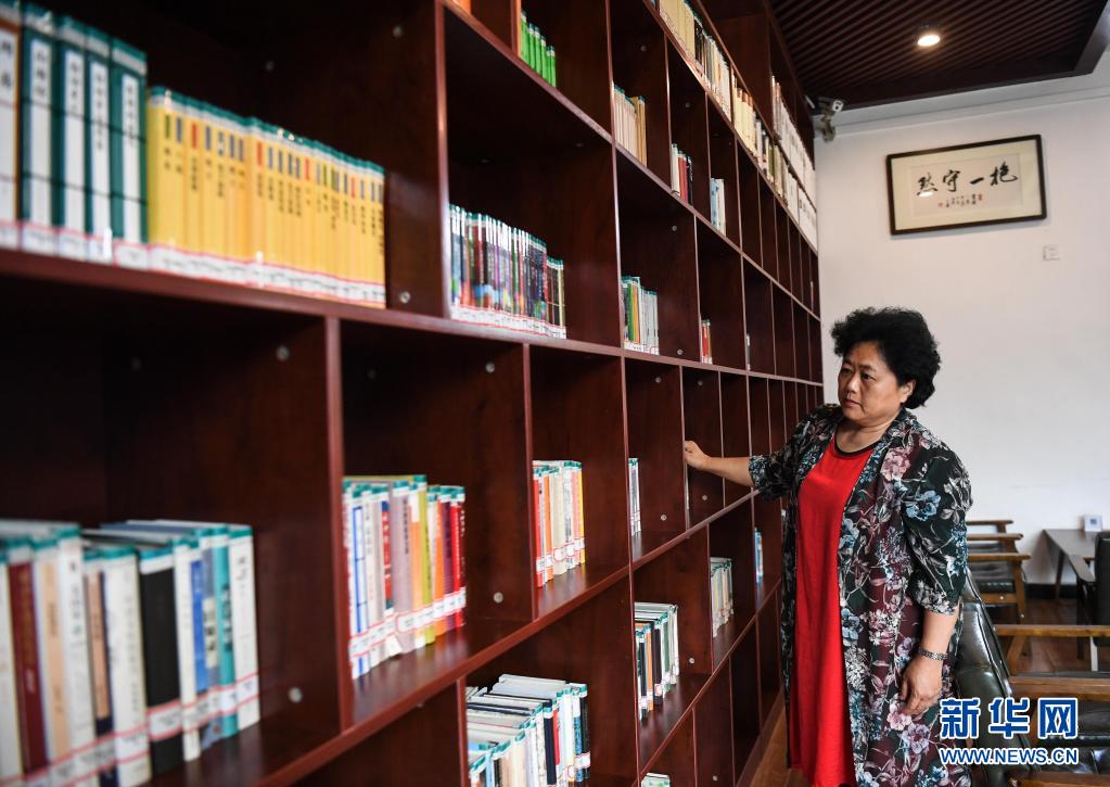 4月8日,在广东清远清城区的岛上书院,市民陈卫红在查阅书籍。