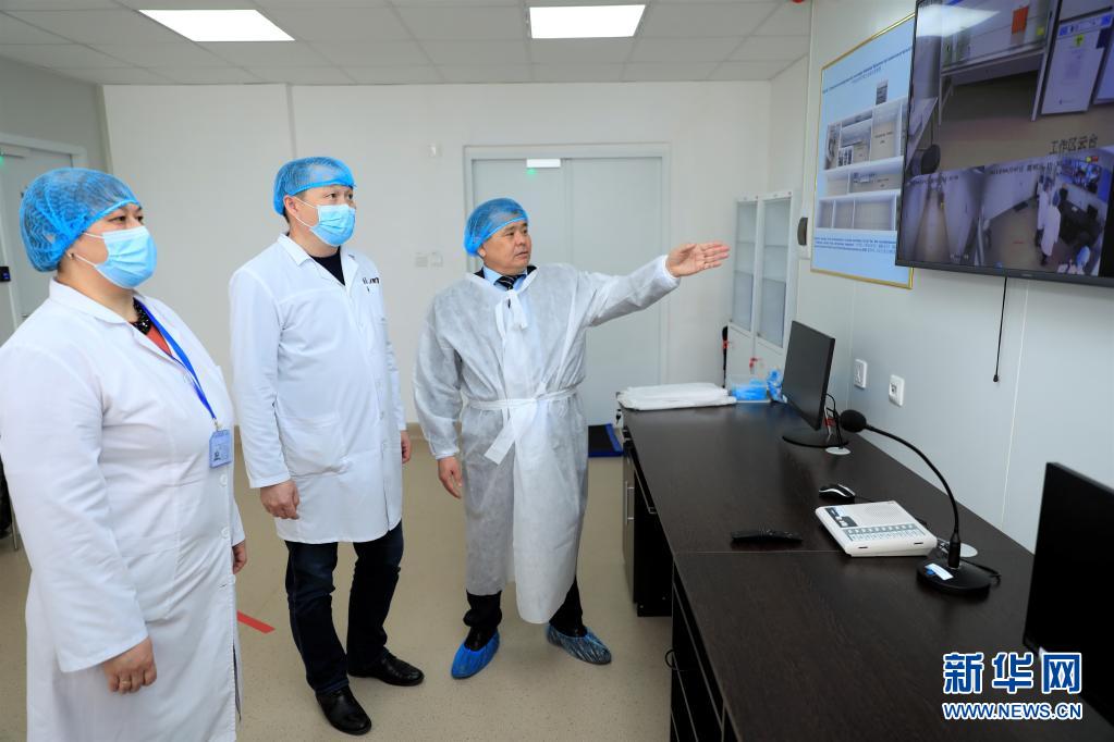4月7日,科研人员在哈萨克斯坦努尔苏丹的塞富林农业技术大学查看中哈农业科学联合实验室监控情况。