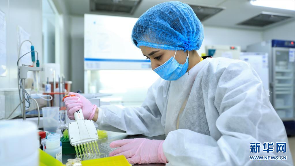 4月7日,科研人员在哈萨克斯坦努尔苏丹的塞富林农业技术大学中哈农业科学联合实验室工作。