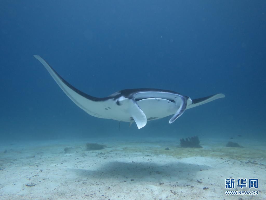 这是新西兰奥克兰大学海洋生物学教授马克·科斯特洛在太平洋海底拍摄的蝠鲼。