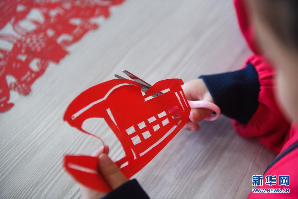 4月9日,老师指导孩子们创作红船剪纸作品。
