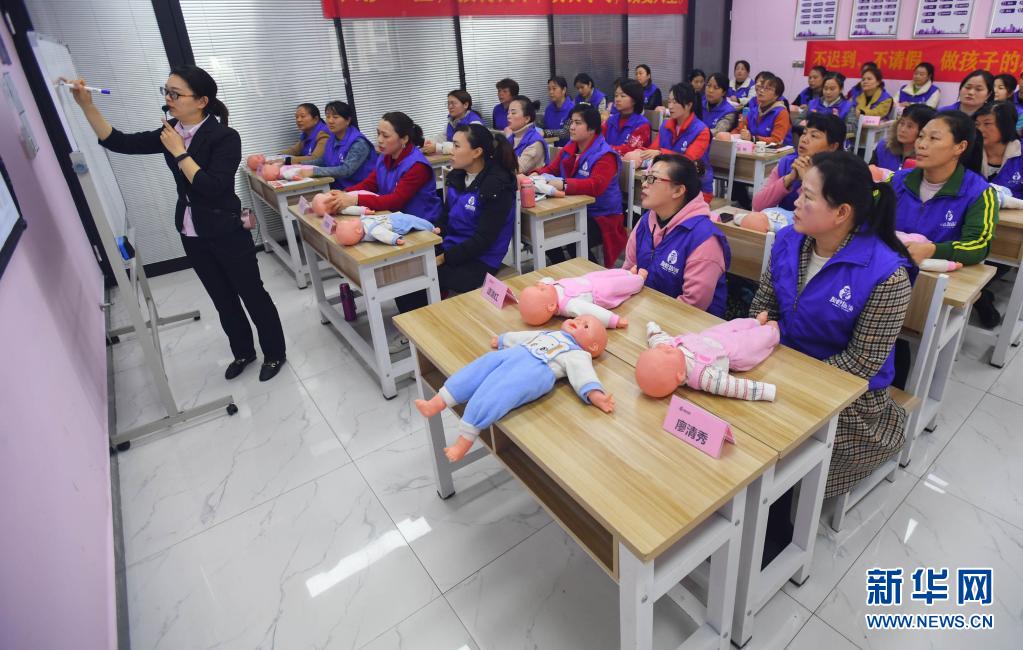 4月9日,在湖南省长沙市长沙县一家职业培训学校,老师在育婴员培训班上为学员们授课。