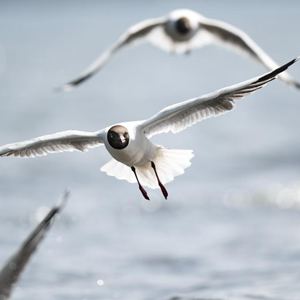4月8日,一群棕头鸥在青海湖岸边飞翔。