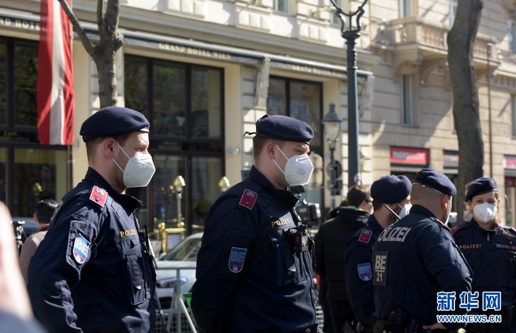 4月9日,警察在奥地利维也纳伊朗核问题全面协议会场外执勤。伊朗核问题全面协议相关方会议4月9日继续在奥地利首都维也纳举行。新华社记者 郭晨 摄